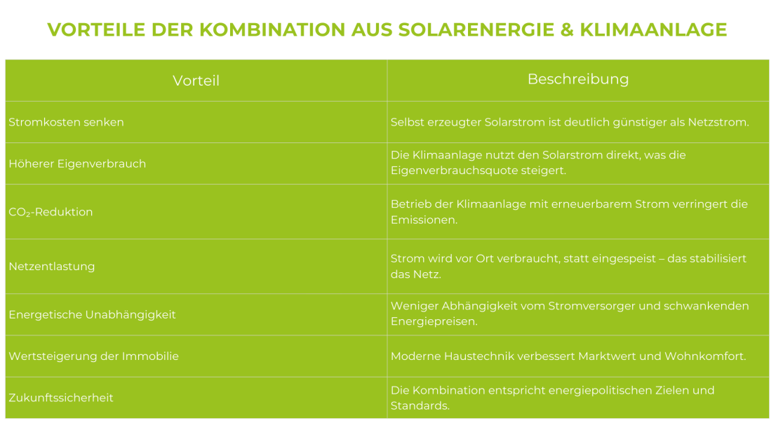 Vorteile der Kombination aus Photovoltaik und Klimaanlage